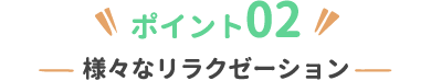 お体を温めることによる効果の向上や、運動をした後の疲労を取り除くといったリラクゼーションとなっております。その他にもお体を動かしにくいなどといった不調の軽減にも繋がります。