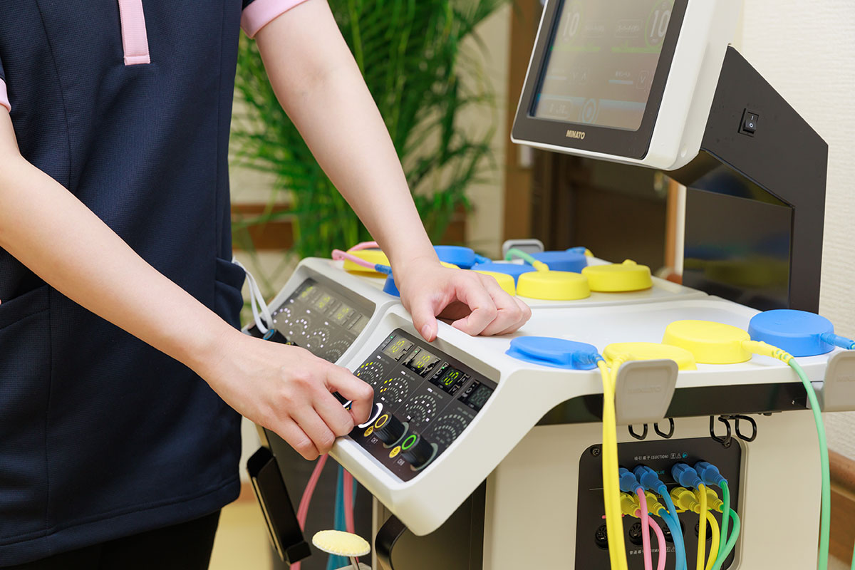 職員が、一人ひとりに合わせた運動量でマシンの設定をしています。徐々に筋肉がついてくることを実感される方も多く、体力作りだけではなく、歩行の安定にも繋がります。